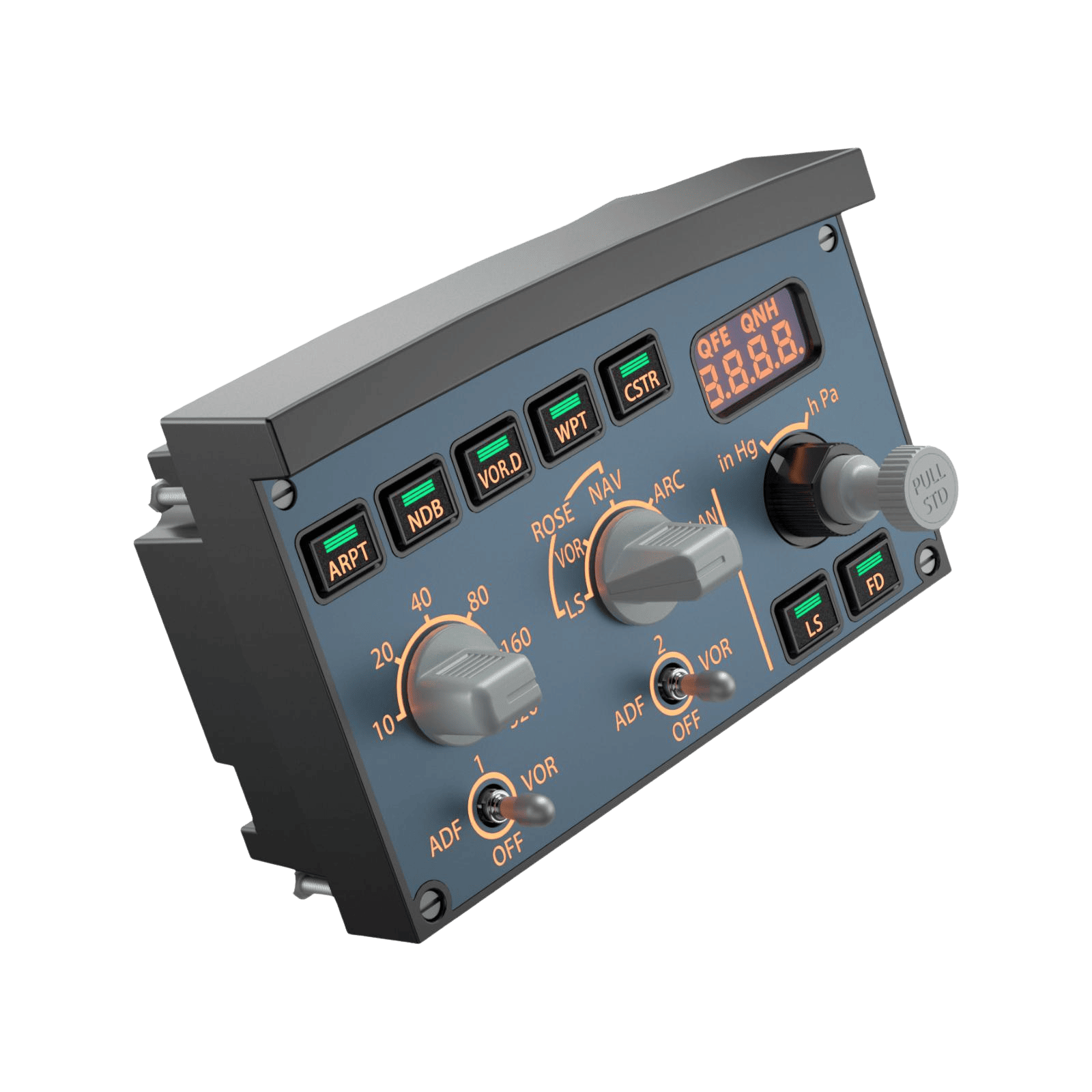 Dimensiones compactas para montaje en paneles o estructuras de cockpit.
